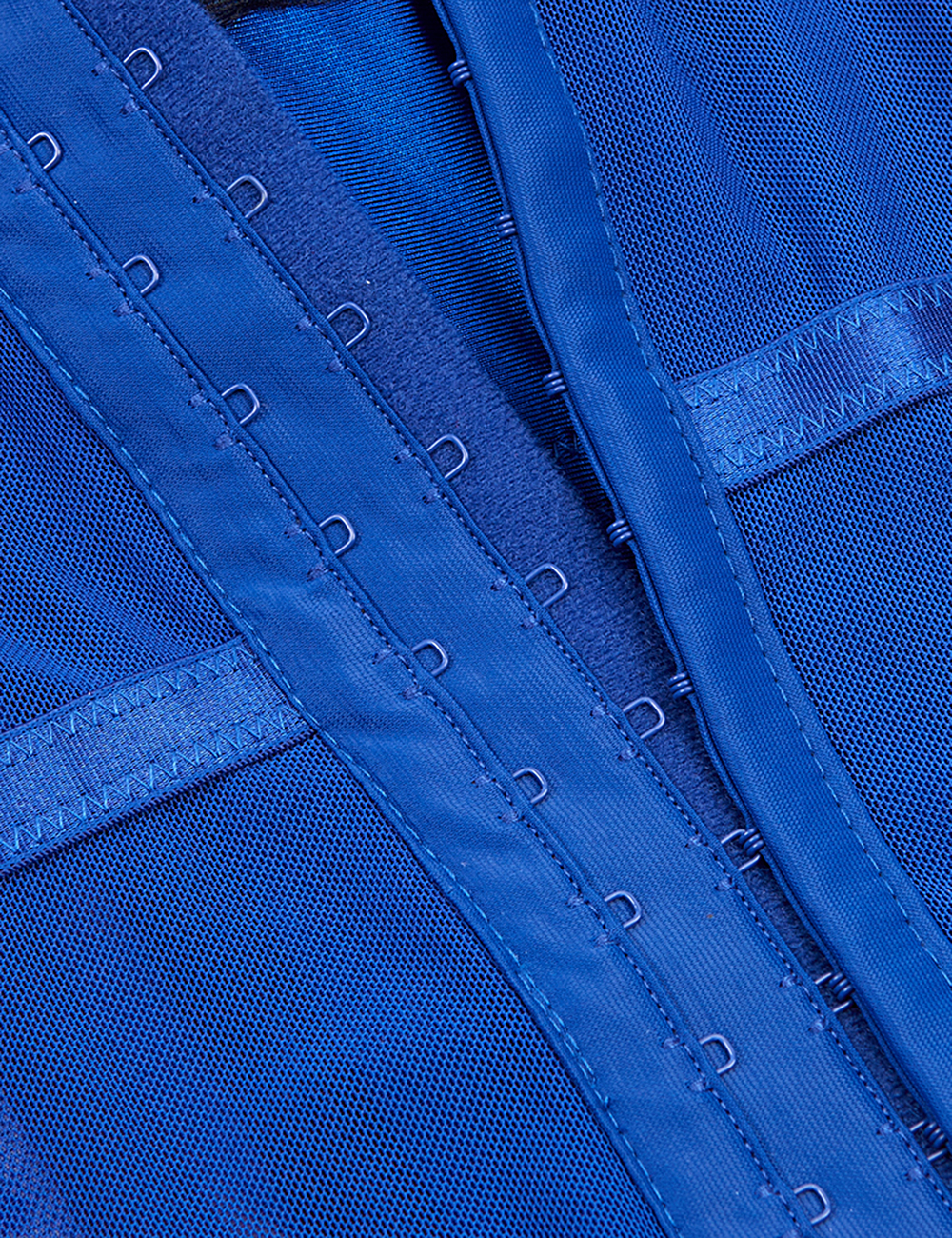 A long row of adjustable hook-and-eye closures at the back allows for a customized fit, accommodating a variety of body types. Lace mesh detailing on the sides adds a touch of sophistication and subtle allure, while multiple soft support bones help contour the waist comfortably and effectively.