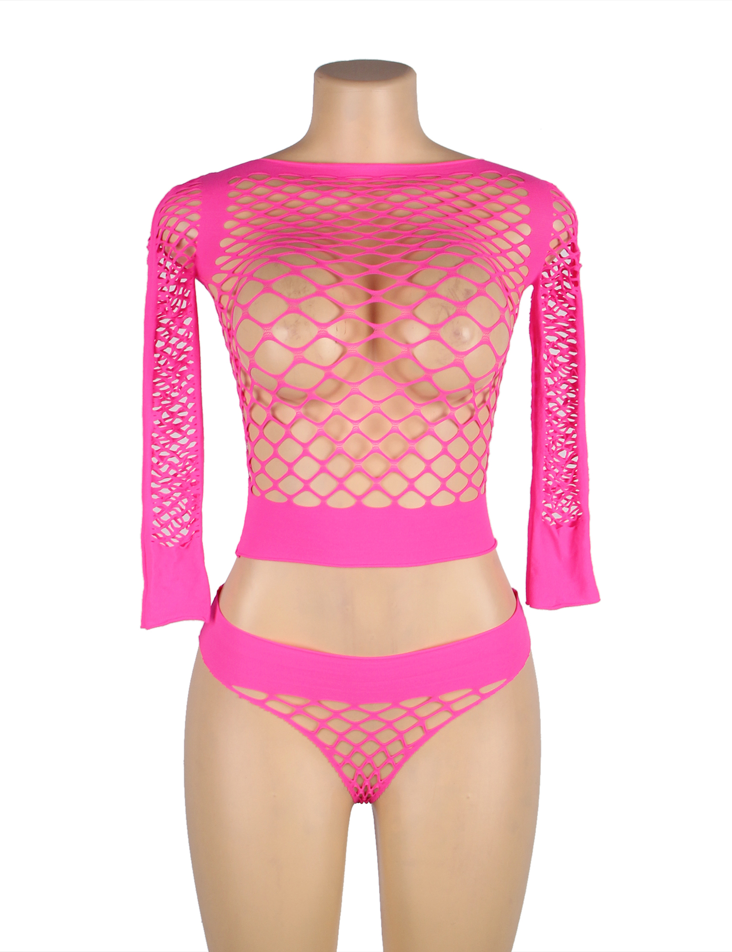 This sexy two-piece lingerie set is made from high-elasticity nylon yarn, soft and snug, offering a comfortable fit for a variety of body types. The diamond mesh design is both fashionable and classic, adding a modern and alluring touch.